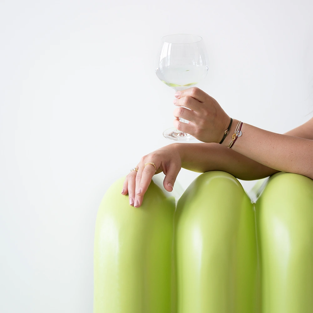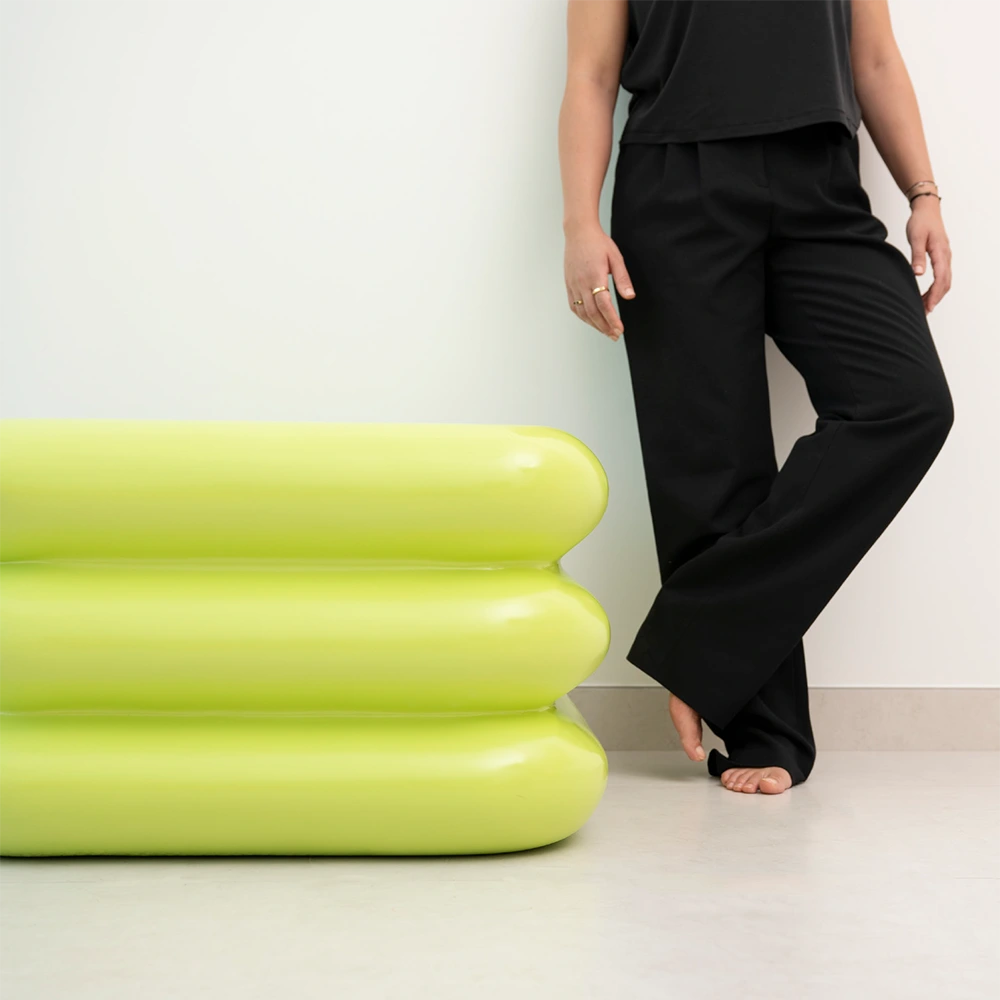 A modern sculptural furniture that defies convention—flowing edges blending organic movement with contemporary architecture. Wrapped in an electrifying green tone that commands attention